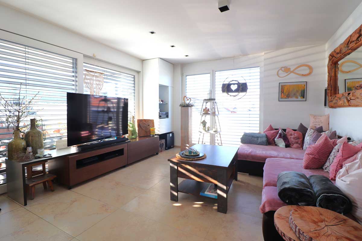 • Wohnzimmer mit Zugang zur großen, teilüberdachten Terrasse mit ca. 75 m² (!)