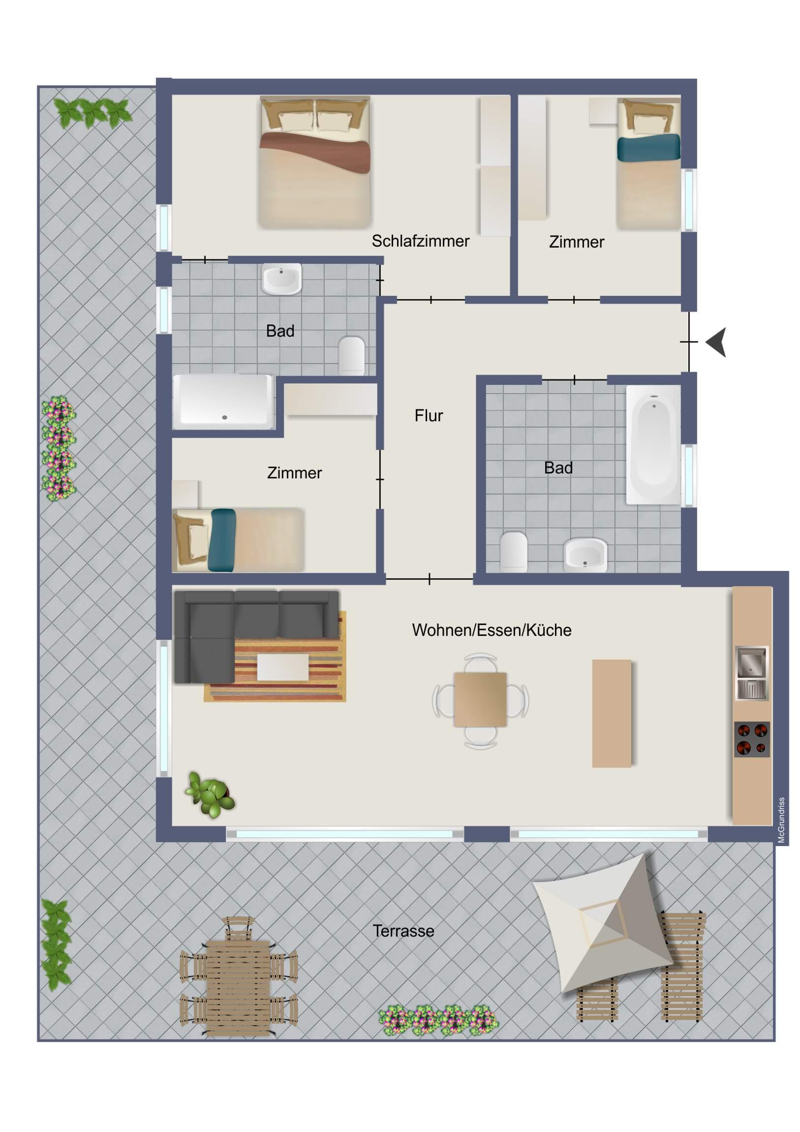 • 3 Schlafzimmer, das Hauptschlafzimmer verfügt über eine eigene Dusche + WC (!)
