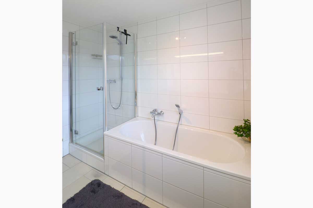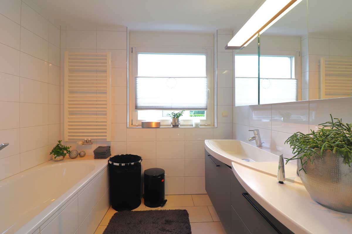 - geräumiges Bad mit Dusche + Badewanne und großem Waschbecken