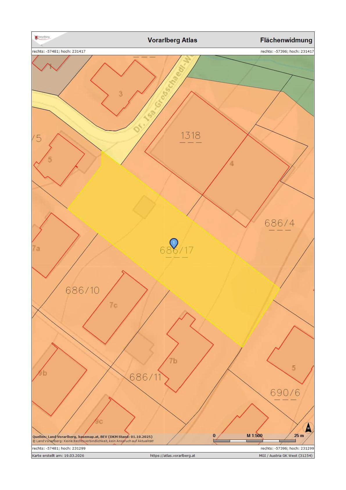 Das Grundstück befindet sich im beliebten Ortsteil Tisis der Stadt Feldkirch. Die Nähe zur Grenze zu Liechtenstein macht diese Lage besonders attraktiv für Berufspendler. Gleichzeitig profitieren Sie von einer ausgezeichneten Infrastruktur: Einkaufsmöglichkeiten, Schulen, Kindergärten sowie öffentliche Verkehrsmittel sind in kurzer Zeit erreichbar.