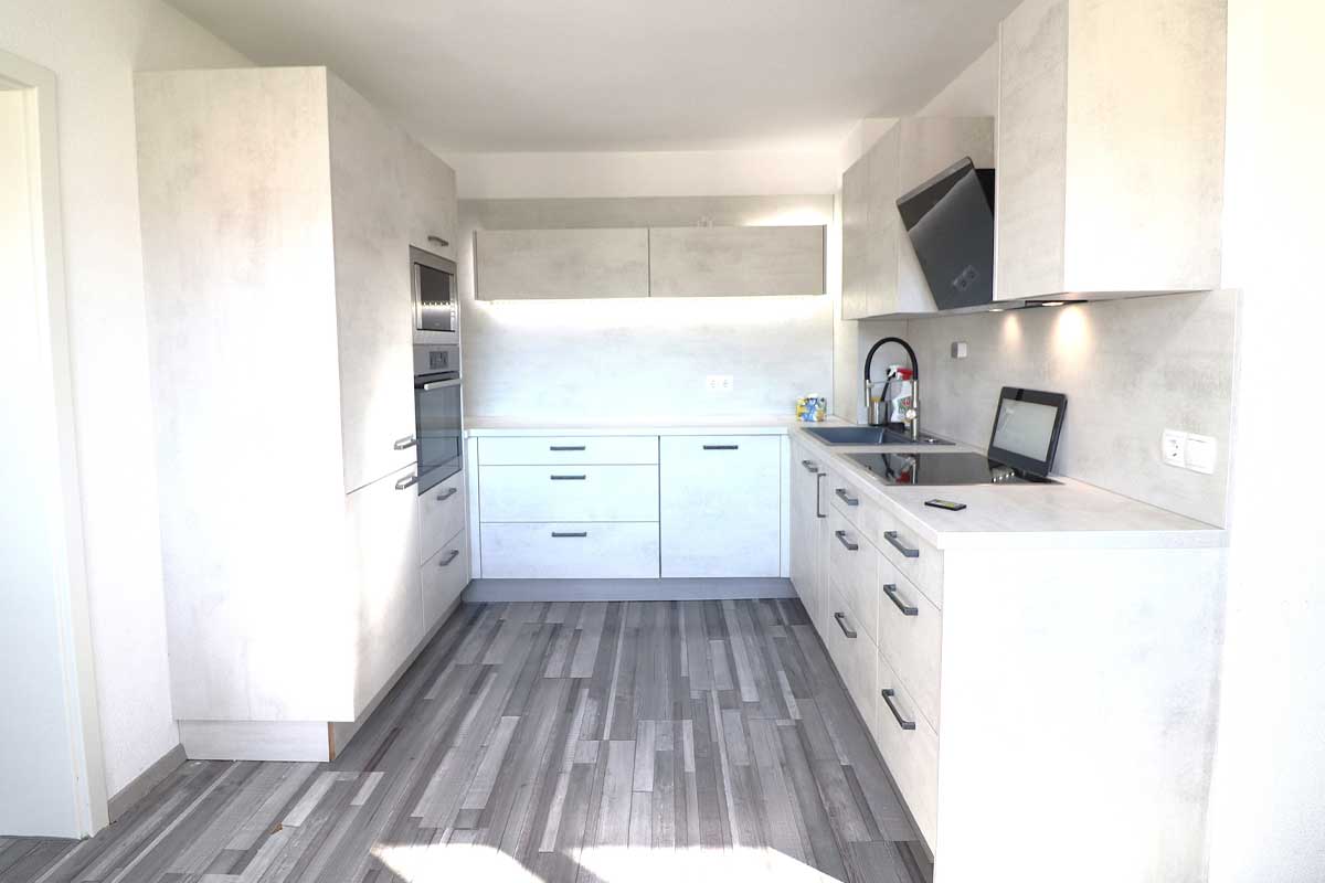 - Küche mit komplett ausgestatteter Küchenzeile und Essbereich