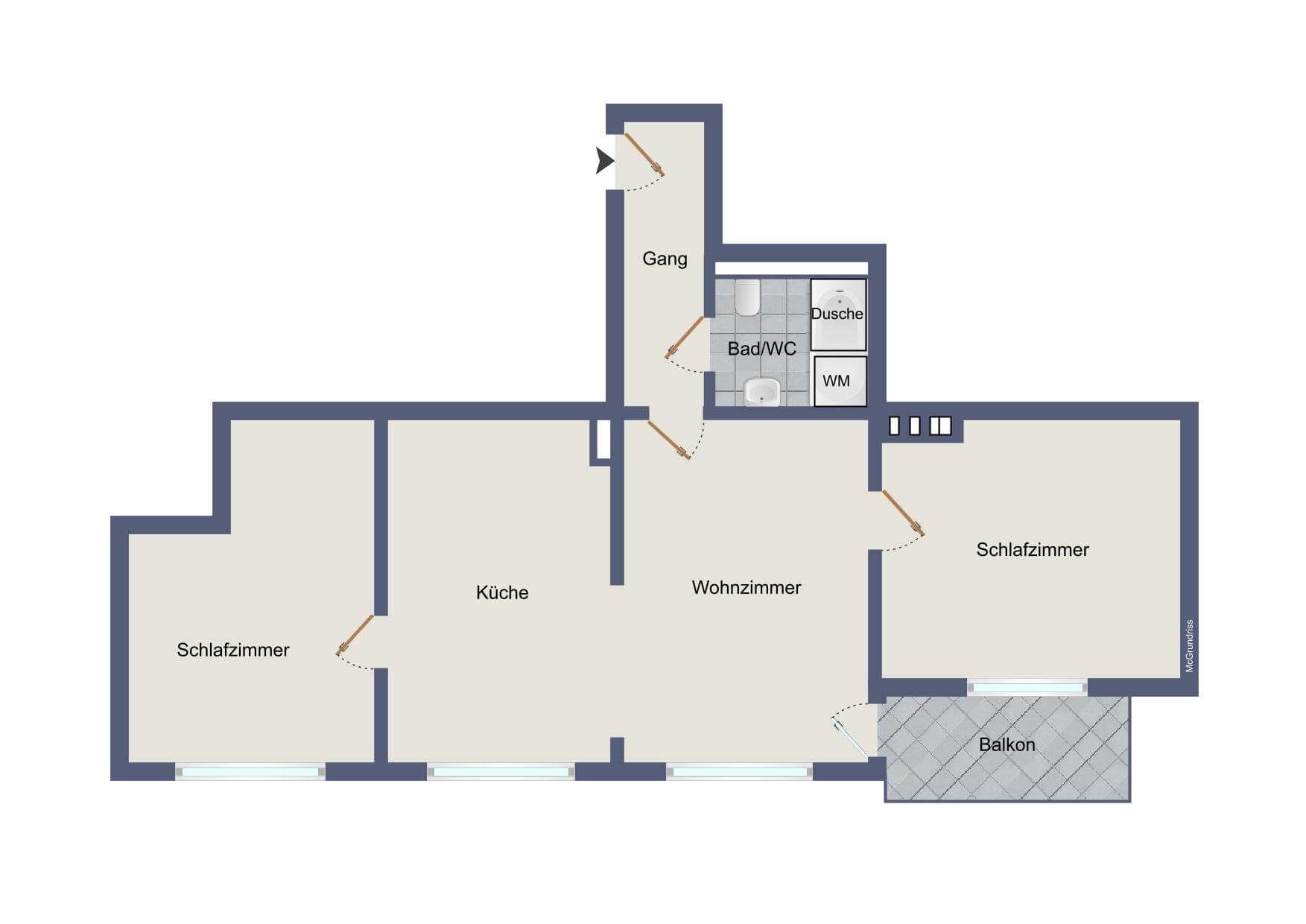 - Bad mit Dusche, WC und Waschmaschinenanschluss