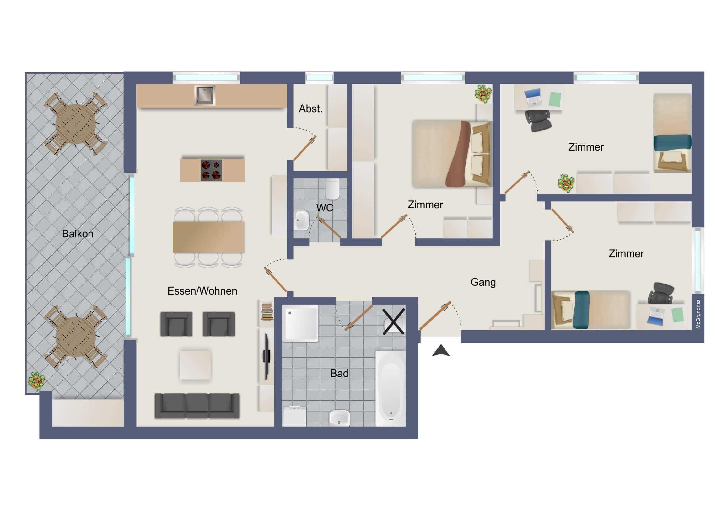 - ca. 88 m² Wohnfläche, bestens eingeteilt mit viel Tageslicht