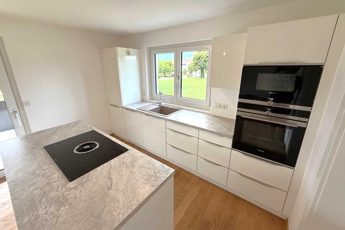 - moderne Einbau-Küche inkl. aller Elektrogeräte, Kücheninsel mit BORA Herd